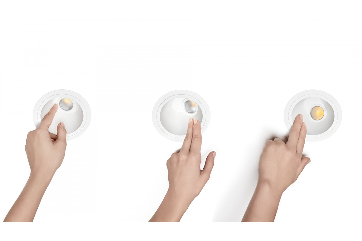 Pointer is a directional LED downlight for recess-mounting applications. With a fine and narrow bezel, it stands out for its minimalist aesthetics, its perfect integration into the ceiling and the possibility of being easily directed towards any angle, as many times as required, just with a very gentle hand motion. Whatever may be the orientation of the adjustable light beam, Pointer always maintains the same aesthetic appearance. An advantage that increases the sensation of visual order of the ceiling and which makes Pointer unique in the market.