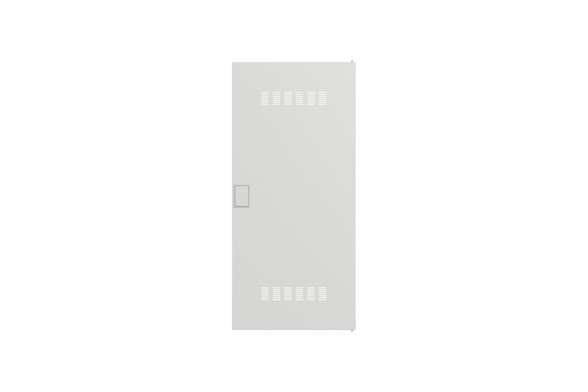Tür, Tür, Schutzklasse II (schutzisoliert), Schutzart IP20, mit VDE-Prüfzeichen, geltende Normen: DIN EN 60670-24; VDE 0606-24, pulverbeschichtet, in RAL 9016, Stahlblechtür belüftet, Tür aus Stahlblech, in RAL 9016, Türöffnungswinkel 125 Grad, Abmessungen in mm (H x B x T): 675 x 311 x 13, Feldbreite 1, 4-reihig, Platzeinheiten 48