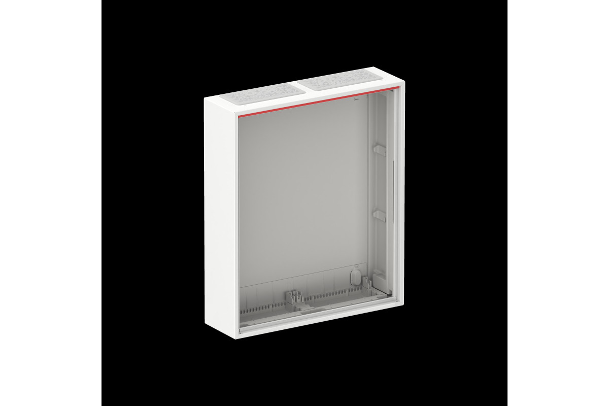 Kleinverteiler, Leerschrank, Anbaumöglichkeit: oben und unten, Montageart: Aufputz, für den Innenbereich, ohne Tür, Schutzklasse II (schutzisoliert), in Verbindung mit Erdungsset (Zubehör) Schutzklasse I möglich, Schutzart IP30, geltende Normen: DIN EN 61439-1, VDE 0660-600-1, DIN EN 61439-3, VDE 0660-600-3, Bemessungsbetriebsspannung Ue 400V AC 50/60 Hz, Bemessungsstrom In 125 A, pulverbeschichtet, in RAL 9016, Gehäuse aus Stahlblech, ohne Tür, Leitungseinführung oben über Membranflansch montiert, unten über Flanschöffnung vorgeprägt, Abmessungen in mm (H x B x T): 650 x 550 x 160, Rastein