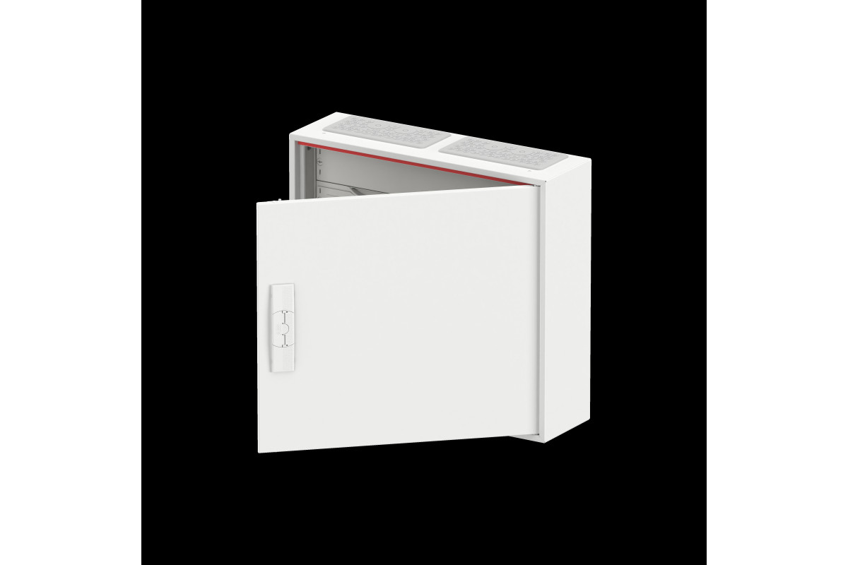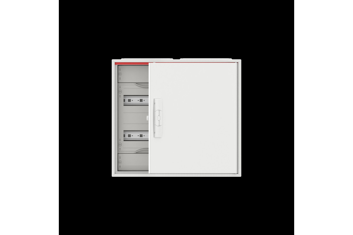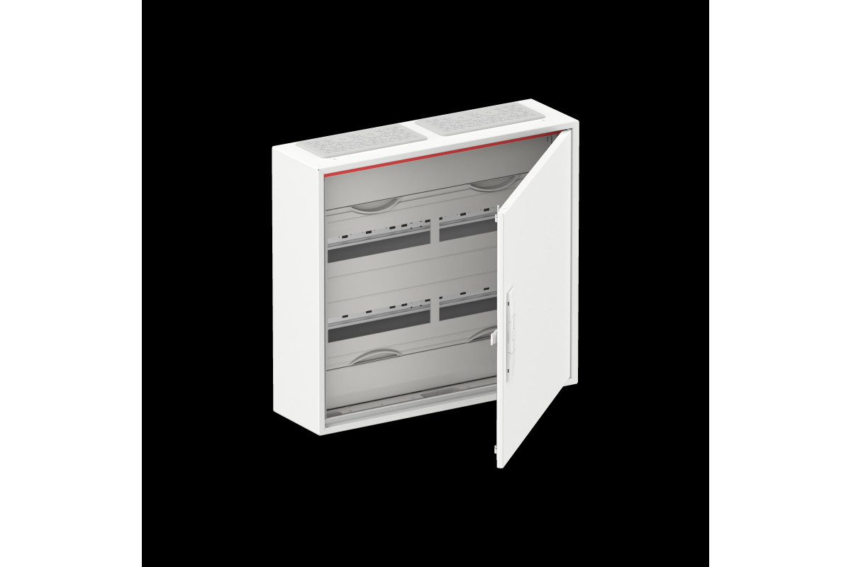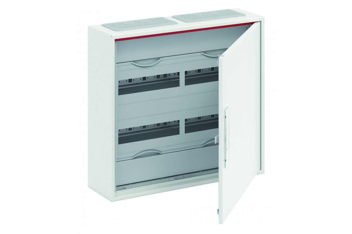 Kleinverteiler, teilausgebauter Schrank, Anbaumöglichkeit: oben und unten, Montageart: Aufputz, für den Innenbereich, mit Tür, Schutzklasse II (schutzisoliert), in Verbindung mit Erdungsset (Zubehör) Schutzklasse I möglich, Schutzart IP44, geltende Normen: DIN EN 61439-1, VDE 0660-600-1, DIN EN 61439-3, VDE 0660-600-3, Bemessungsbetriebsspannung Ue 400V AC 50/60 Hz, Bemessungsstrom In 125 A, pulverbeschichtet, in RAL 9016, Gehäuse aus Stahlblech, einflüglige Tür, Tür aus Stahlblech, in RAL 9016, mit Standardverschluss, Türöffnungswinkel 120 Grad, Türanschlag rechts oder links, Leitungseinführung oben über Membranflansch montiert, unten über Flanschöffnung vorgeprägt, Abmessungen in mm (H x B x T): 500 x 550 x 160, Rasteinheit 3 RE, Feldbreite 2, 2-reihig, Platzeinheiten 48, Reihenabstand: 150, Abdeckungen aus Kunststoff, 90 Grad Druck-Drehverschluss, RAL 7035, mit N/PE Quick-Steckklemme, Kabelabfangschiene integriert, ausgebaut mit Verteilerfeld, Geräteträger herausnehmbar
