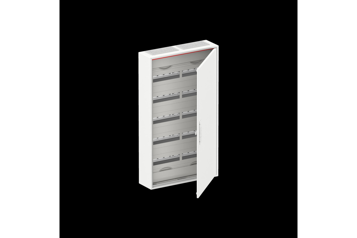 Kleinverteiler, teilausgebauter Schrank, Anbaumöglichkeit: oben und unten, Montageart: Aufputz, für den Innenbereich, mit Tür, Schutzklasse II (schutzisoliert), in Verbindung mit Erdungsset (Zubehör) Schutzklasse I möglich, Schutzart IP44, geltende Normen: DIN EN 61439-1, VDE 0660-600-1, DIN EN 61439-3, VDE 0660-600-3, Bemessungsbetriebsspannung Ue 400V AC 50/60 Hz, Bemessungsstrom In 125 A, pulverbeschichtet, in RAL 9016, Gehäuse aus Stahlblech, einflüglige Tür, Tür aus Stahlblech, in RAL 9016, mit Standardverschluss, Türöffnungswinkel 120 Grad, Türanschlag rechts oder links, Leitungseinführung oben über Membranflansch montiert, unten über Flanschöffnung vorgeprägt, Abmessungen in mm (H x B x T): 950 x 550 x 160, Rasteinheit 6 RE, Feldbreite 2, 5-reihig, Platzeinheiten 120, Reihenabstand: 150, Abdeckungen aus Kunststoff, 90 Grad Druck-Drehverschluss, RAL 7035, mit N/PE Quick-Steckklemme, Kabelabfangschiene integriert, ausgebaut mit Verteilerfeld, Geräteträger herausnehmbar