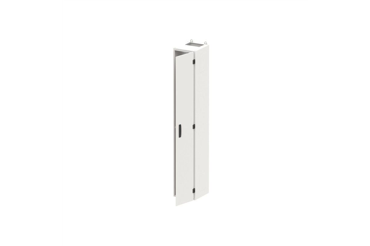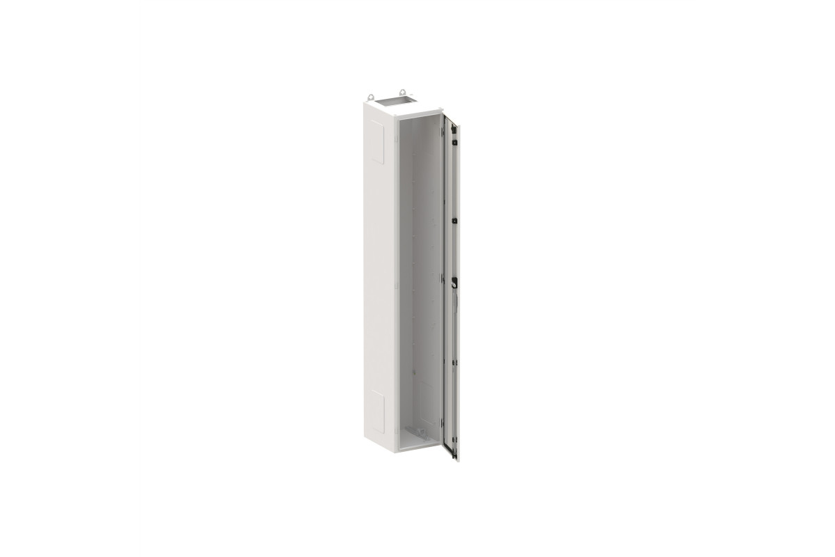 Standschrank, Baureihe TwinLine, Leerschrank, Anbaumöglichkeit: seitlich und unten, Montageart: Aufputz, für den Innenbereich, mit Tür, Schutzklasse I (geerdet), Schutzart IP55, geltende Normen: DIN EN 61439-1, VDE 0660-600-1, DIN EN 61439-2, VDE 0660-600-2, DIN EN 61439-3, VDE 0660-600-3, IK-Code 8, pulverbeschichtet, in RAL 7035, Gehäuse aus Stahlblech, einflüglige Tür, Tür aus Stahlblech, mit Standardverschluss Doppelbart 3 mm, Türöffnungswinkel 180 Grad, Türanschlag rechts oder links, Rückwand aus Stahlblech, Leitungseinführung oben über Flanschöffnung ausgeschnitten, unten über Flansch