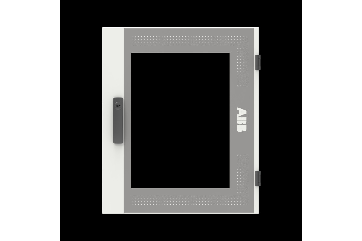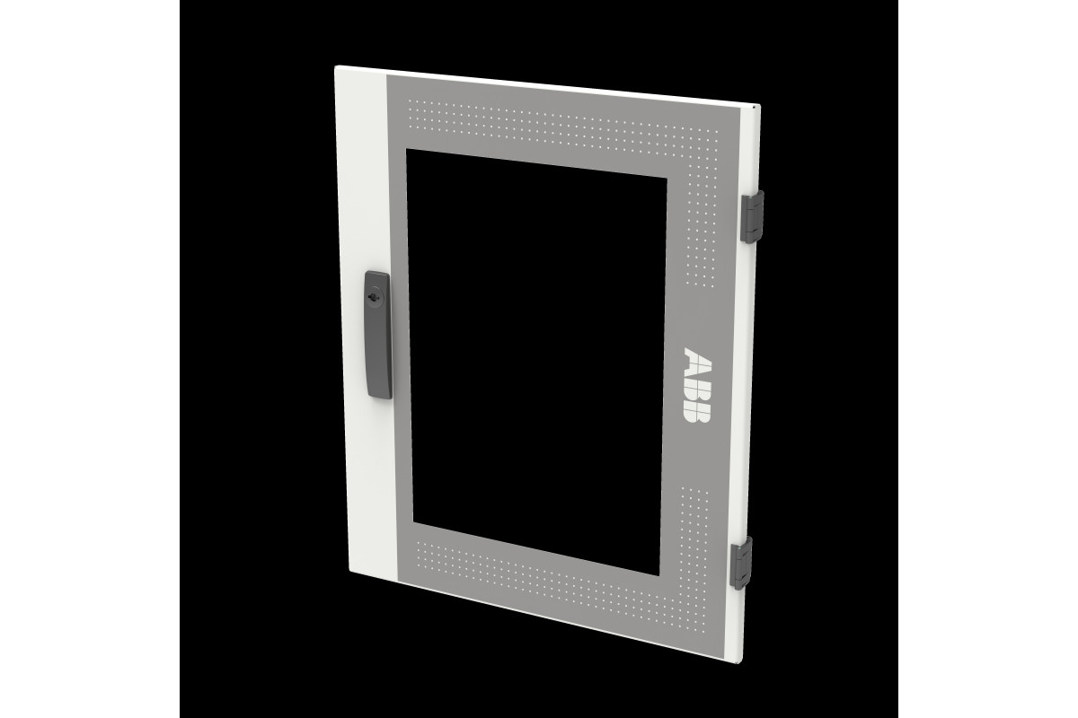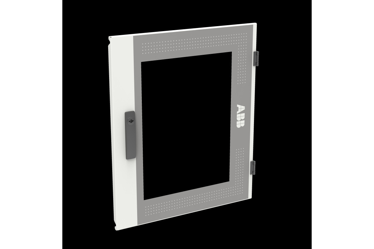 Tür rechts mit Sichtscheibe, Feldbreite 2, Bauhöhe 0 (4 RE), pulverbeschichtet, Farbe: RAL 7035, Tür mit Stangenverschluss und Standardverschluss Doppelbart 3 mm, passend für Wandschränke TwinLine-TW/L/G404/504.