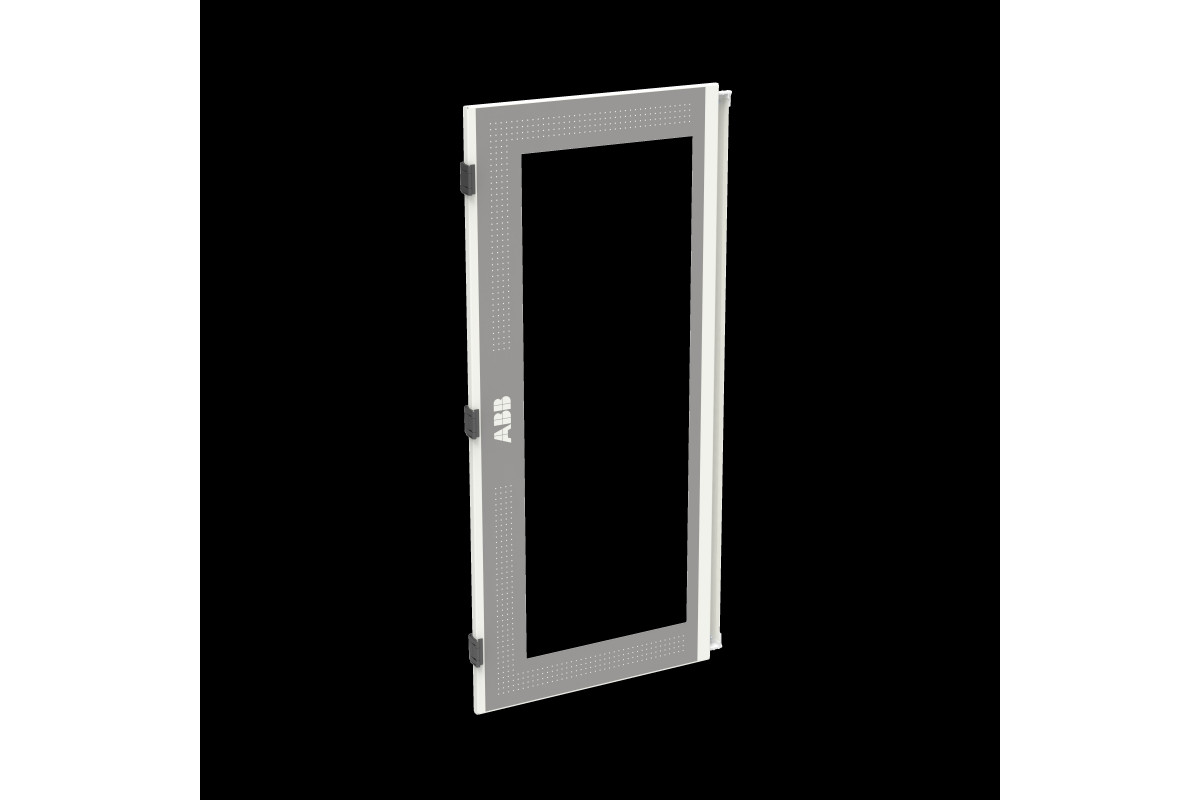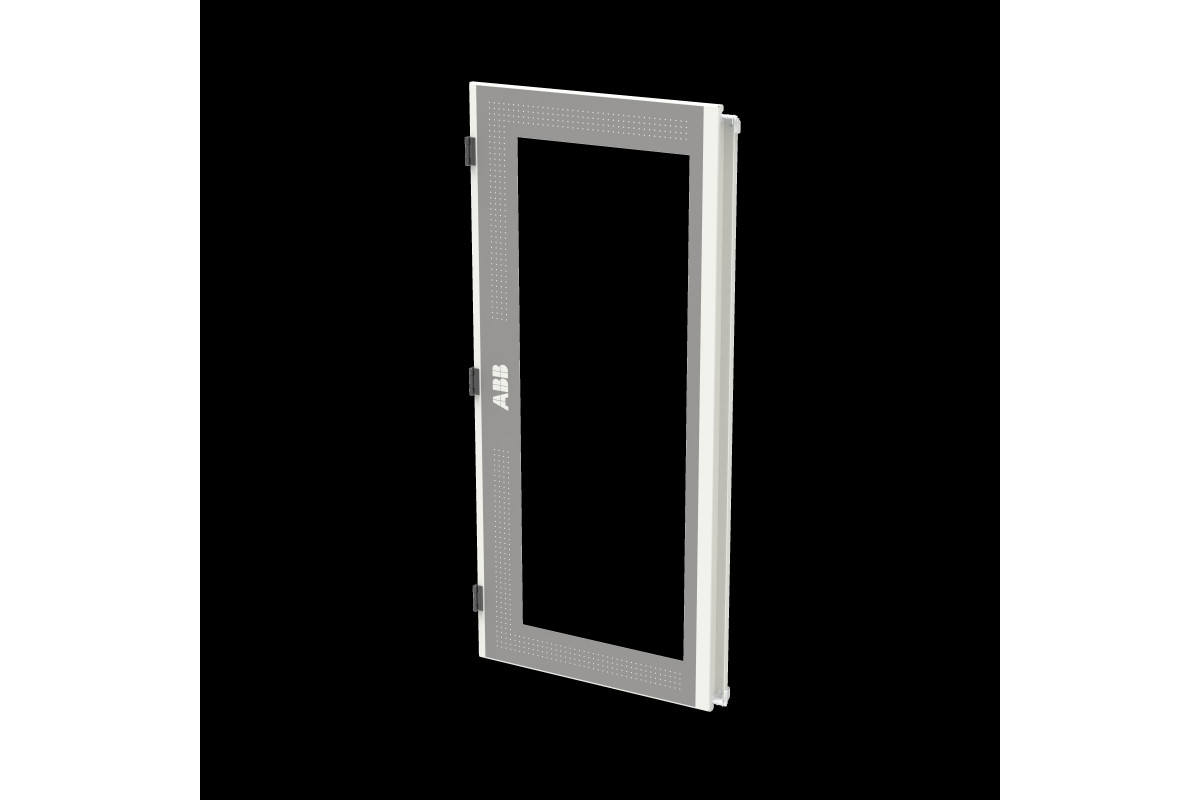 Tür links mit Sichtscheibe, Feldbreite 2, Bauhöhe 3 (7 RE), pulverbeschichtet, Farbe: RAL 7035, Tür mit Stangenverschluss und Standardverschluss Doppelbart 3 mm, passend für Wandschränke TwinLine-TW/L/G407.