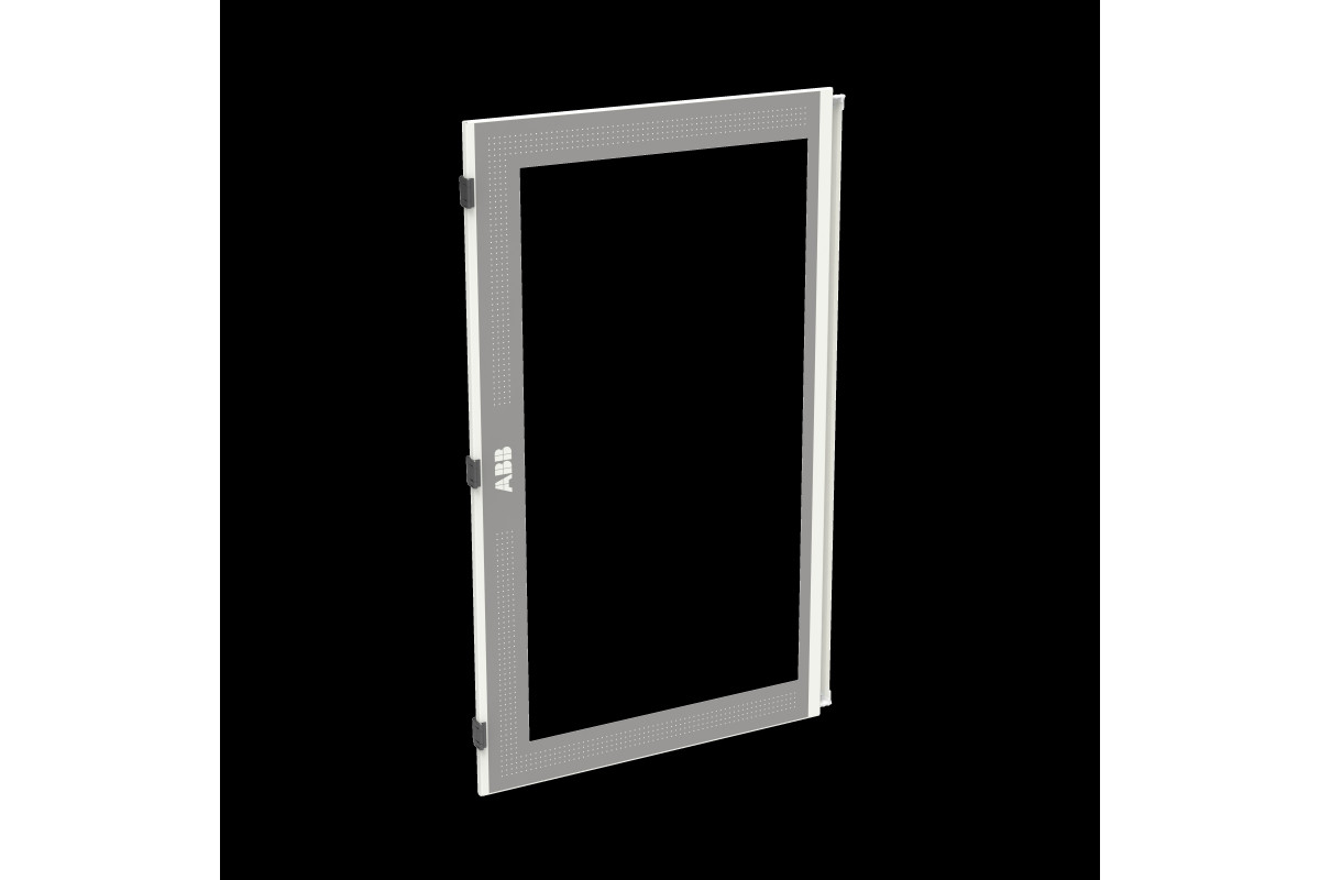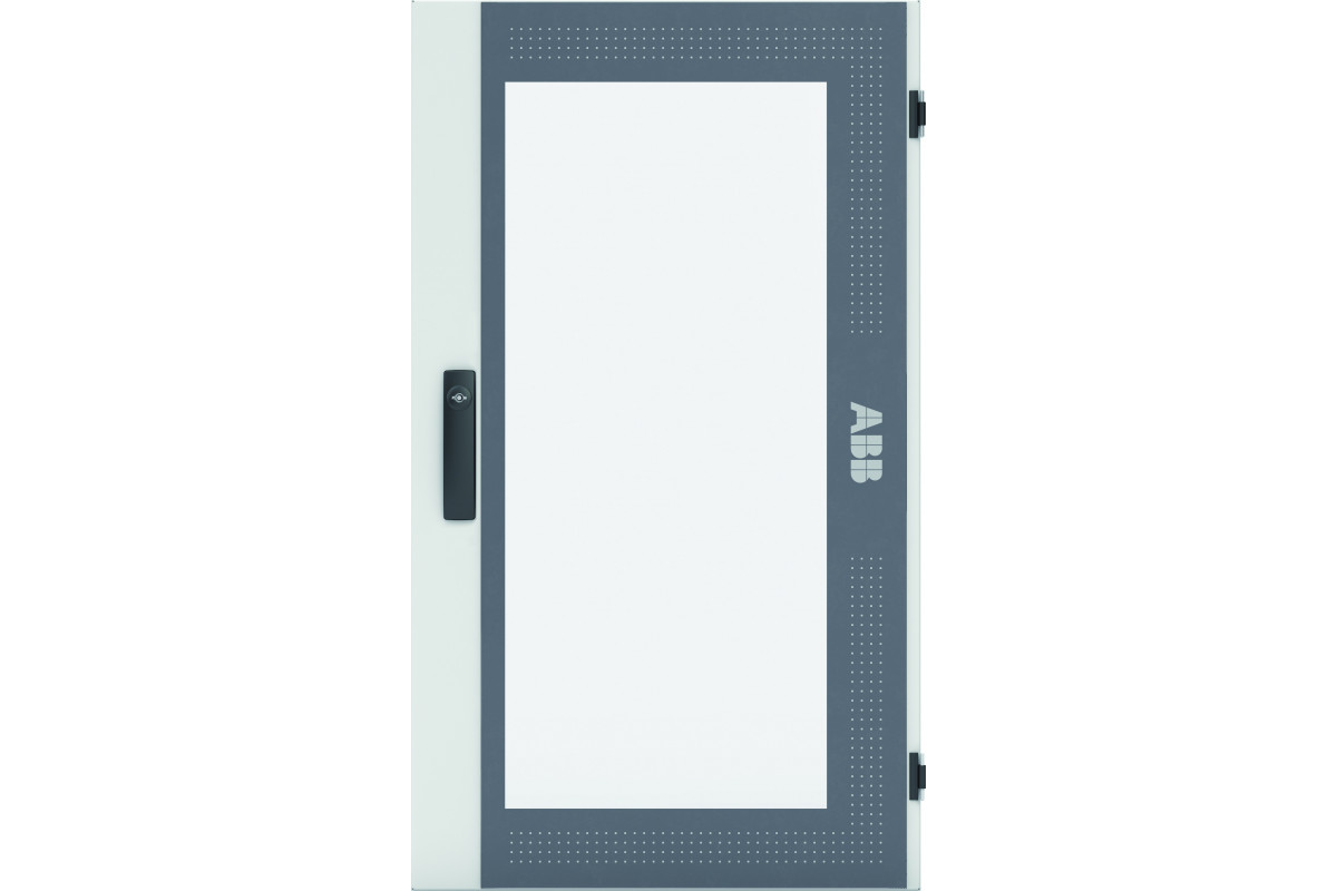 Tür links mit Sichtscheibe, Feldbreite 3, Bauhöhe 4 (8 RE), pulverbeschichtet, Farbe: RAL 7035, Tür mit Stangenverschluss und Standardverschluss Doppelbart 3 mm, passend für Wandschränke TwinLine-TW/L/G508.