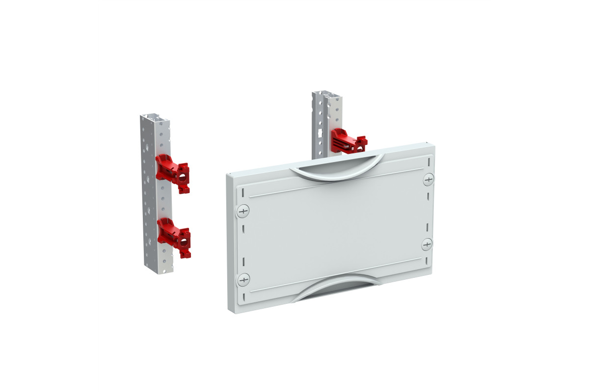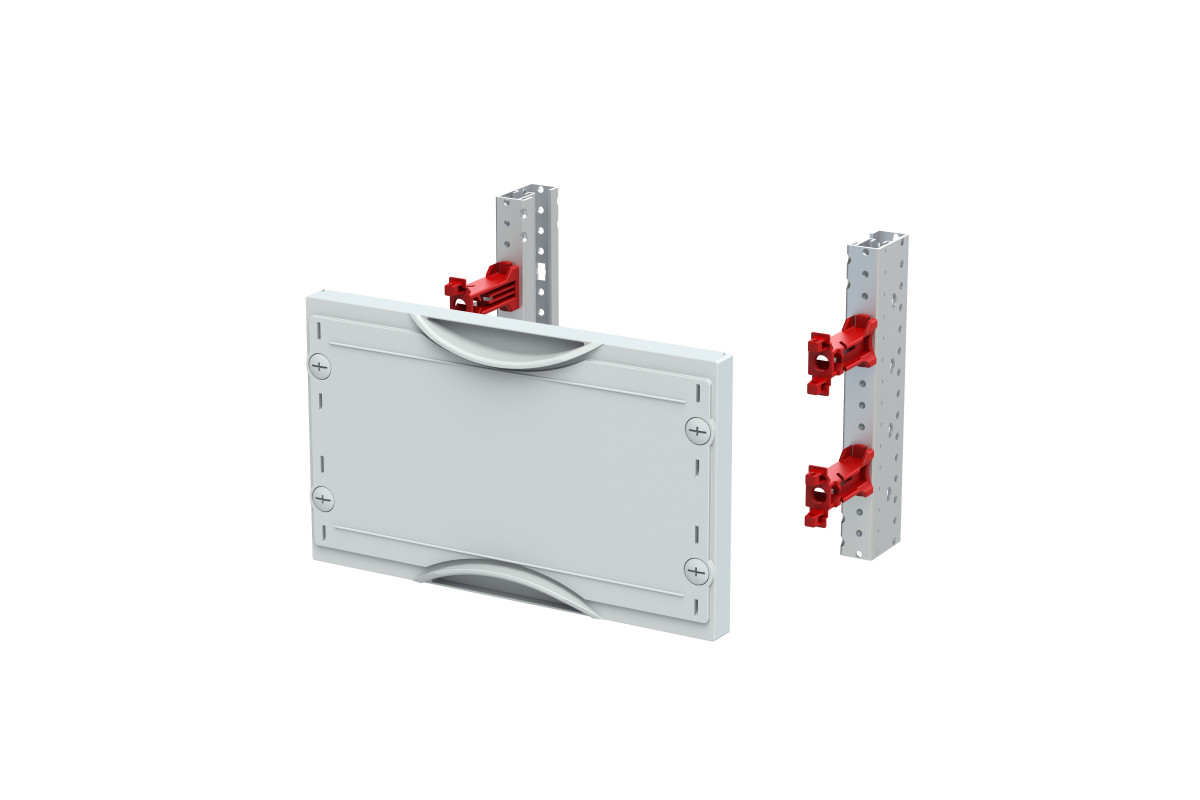 Innenausbau Modul, CombiLine, Bausatz unmontiert, für Berührungsschutz, Rasteinheit 1 RE = 150 mm, Feldbreite 1 = 250 mm, 12 Platzeinheiten, Abdeckungen aus Kunststoff, 90 Grad Druck-Drehverschluss, RAL 7035, Ausführung der Abdeckung: geschlossen, einsetzbar ab einer Schranktiefe von 120 mm, EDF oder WR Montagegerüst muss separat bestellt werden